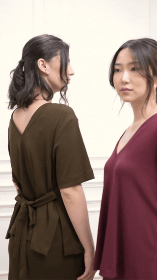 On one side, a thicker crew neckline gives a clean, structured look that feels refined yet edgy. Reverse her for a thinner, minimalist V-neck that softens the silhouette. The waist can be styled loose, or cinched with the detachable belt for definition. Made in a silky Modal jersey, Tabitha drapes with ease while still holding her shape—polished, versatile, and anything but basic.