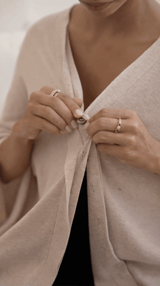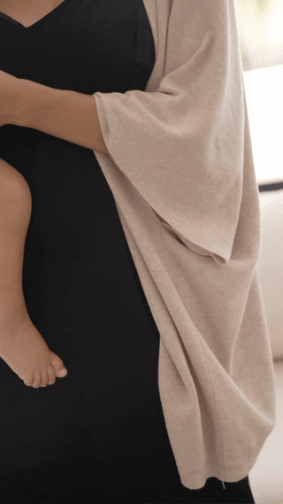 Deborah, an understated, relaxed yet sharp kimono nursing cardigan that pairs with all sorts of everyday clothing and lets you nurse or pump on-the-go. Classic and easy to match