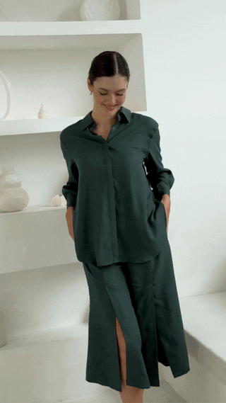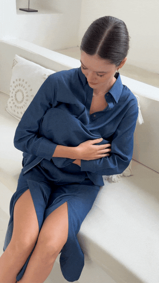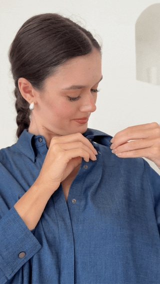 The Delilah All-Occasion TENCEL™ Shirt is a timeless wardrobe essential that adapts to your lifestyle. Wear it buttoned up, open as an overshirt, or cinched in for a sleeker silhouette. Designed with pleats and slits to accommodate changing body shapes, it comes with snap buttons for easy adjustments and a waist belt for a cinched-in look. Made from 100% TENCEL fabric with water- and oil-resistant properties, it’s the perfect blend of comfort and elegance.