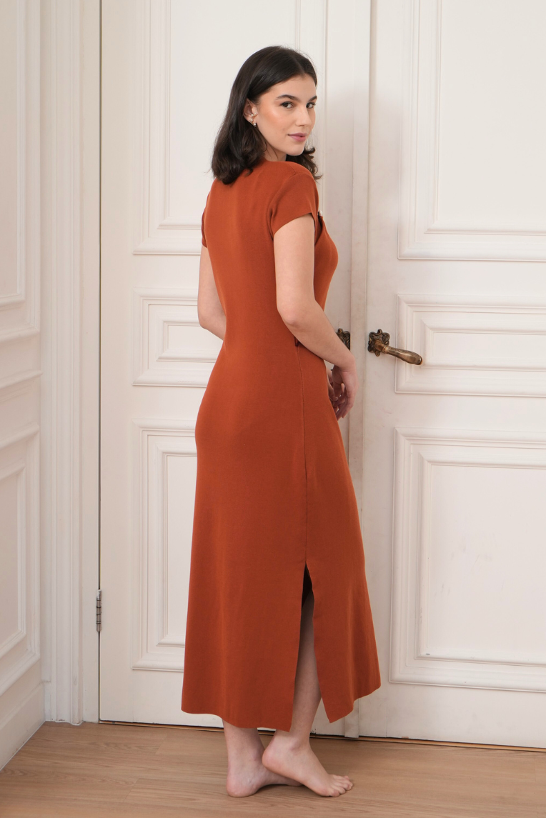 Designed as a modern interpretation of the cheongsam, the Eliza Dress blends tradition with comfort, allowing you to celebrate with ease. Crafted in a super-stretch TENCEL™ knit that feels soft, breathable, and gentle on skin, it moves with the body for all-day comfort. The flattering, pregnancy-friendly silhouette adapts through pregnancy, breastfeeding, and beyond, with discreet invisible zips thoughtfully placed for easy nursing access. Subtle side slits add ease of movement while keeping the look refined and intentional — making it effortless to dress up without feeling overly formal.